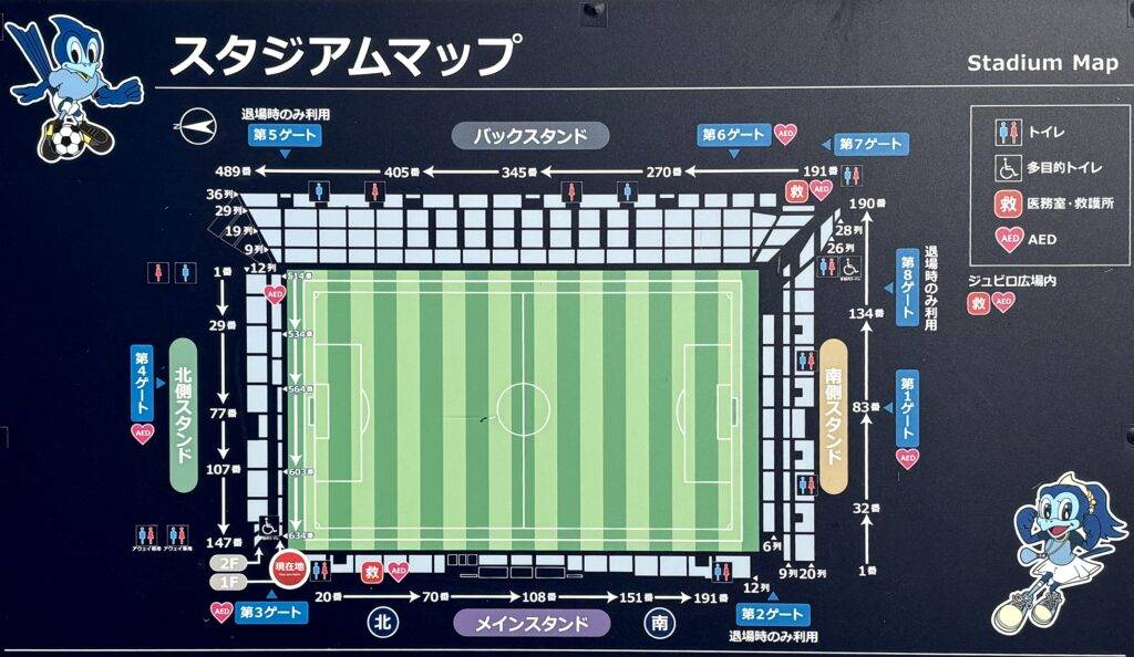 ちなみに、車椅子専用駐車場の場所は、スタジアムのすぐ側にあるジュビロショップのすぐ近くににあります。